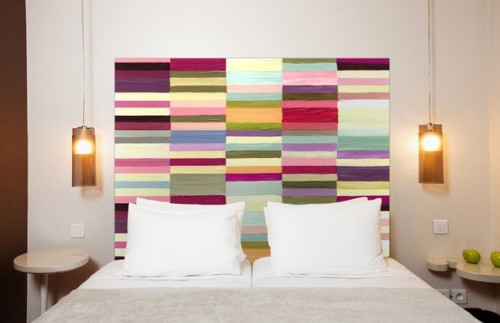 Tête de lit créée par le décorateur Herbert Hufnagel et vue sur le Journal des Femmes