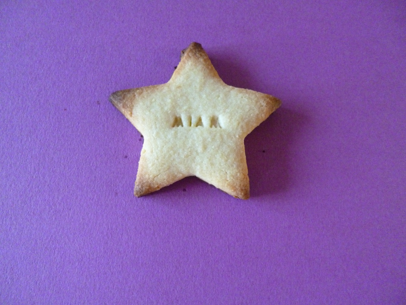 Ce ne serait pas des sablés de Noël ? Je taquine … Quoiqu’avec ce froid de canard, on pourrait bien se refaire des fêtes de Noël ! J’aime beaucoup le miam au milieu, où as-tu trouvé l’emporte pièce ?