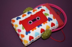 D’abord, des objets rétro revisité en tissu liberty, à pois ou vintage : baladeur cassette, téléphone à cadran, poste radio (pour les personnes nés à partir des années 90 : ce sont les ancêtres de l’Ipod, l’Iphone et station d’accueil…).