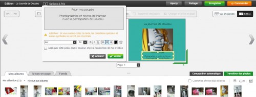 J’ai pu choisir la mise en page, la couleur des fonds et le style et la taille du texte. Et quelques jours plus tard j’ai reçu le livre.