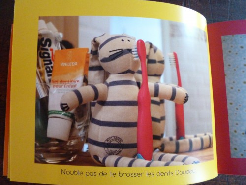 1. Vraiment chouette, le livre est très beau, je pense que ta puce va être très surprise de trouver son doudou dans un livre et va l’adorer.