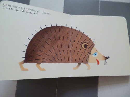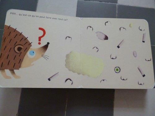 Et oui, c’est un hérisson qui apparaît progressivement et permet de d’aborder le vocabulaire corporel tel que le corps, la tête, les oreilles, les yeux, le nez, les pattes et les piquants (pour la culture général : le hérisson adulte possède entre 5 000 et 7 500 piquants ; mais on sera indulgent avec l’auteur qui n’a pas tout représenté).