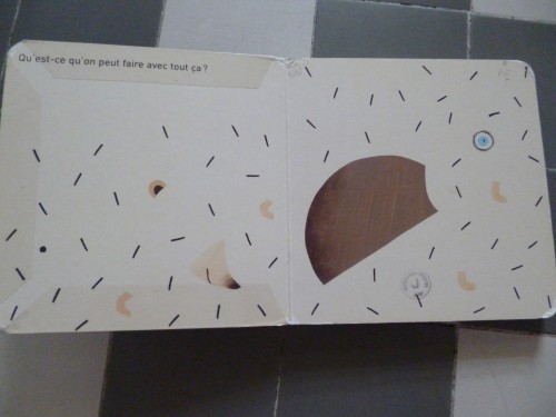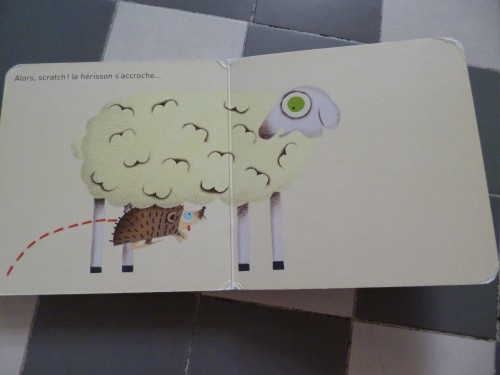 Le hérisson et le mouton est un petit livre aux pages cartonnées qui nous fait découvrir deux animaux par morceaux.