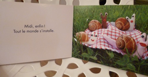 L’heure n’est plus aux pique-niques dans l’herbe verte, mais les escargots étant de sortie, je trouvais que ce livre était d’actualité.