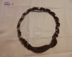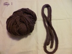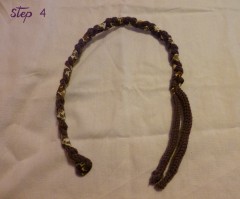 Cousez le ruban au cordon à la fin de la tresse à trois brins (en tressant, la laine se détend et donc le cordon en tricotin s’aggrandit).