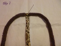 Pliez le cordon en tricotin en deux et cousez le ruban au milieu