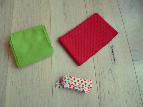 J’avais besoin de tissus variés pour un nouveau projet (pas encore débuté !), et en flanant sur mon site préféré de tissus (et pas seulement parce qu’il y a un carambar dans chaque colis !), j’ai mis dans mon panier sur du tissu nid d’abeille rouge, du tissu sweat anis et un biais au motif pomme.