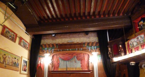 Ce théâtre existe depuis 1965 et la décoration de la salle n’a dû que peu changer, j’ai adoré. Le spectacle, conseillé à partir de 3 ans, est un mélange d’humour et parler lyonnais.