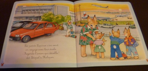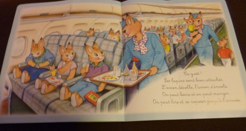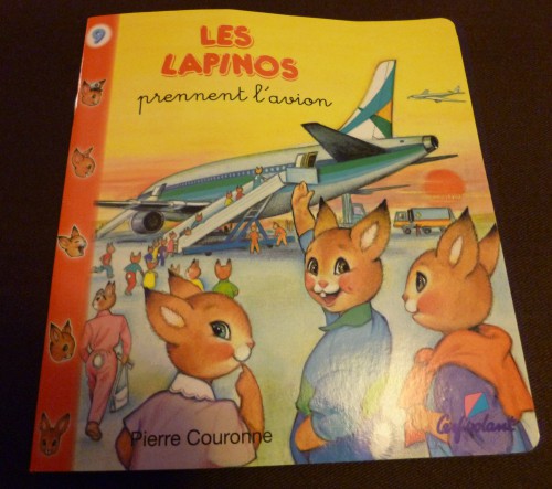 Les lapinos prennent l’avion, de Pierre Couronne aux éditions Beaumont, est un livre souple avec une courte histoire de petits lapins partant en voyage en avion avec leur classe.