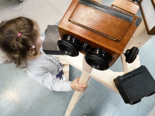 Mais l’exposition que nous avons préféré pour son côté ludique était Jim Curious, voyage au coeur de l’océan de Matthias Picard avec ses planches de bandes dessinées en 3D à observer avec des lunettes, ses images à découvrir dans des stéréoscopes (merci aux organisateurs de l’exposition qui ont pensé au marchepied pour les plus petits !).