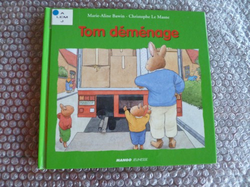 Ce livre de Marie-Aline Bawin et Christophe Le Masne aux éditions Mango Jeunesse aborde ce sujet avec les mêmes étapes ; mais celui est plus détaillé. Le petit lapin Tom voit comment toute sa maison se retrouve dans des cartons, l’arrivée des déménagements, l’odeur de la peinture fraiche dans la nouvelle maison (forcément plus grande) et surtout il y a ce passage où la maîtresse de son ancienne école montre sur une carte qu’il ne déménage pas si loin et pourra donc toujours voir ses amis.