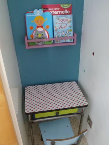 Et voici le petit bureau enfin rénové et installé dans la chambre.