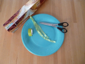 Avec l’assiette en carton, vous formez un cornet que vous fixez avec deux morceaux de masking tape.
