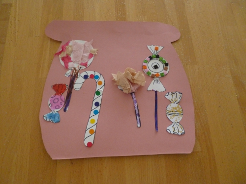 L’idée : décorer des dessins de bonbons pour coller dans une bonbonnière