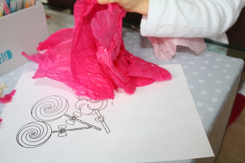 Pour ce troisième rendez L’art est un jeu d’enfant le thème était : bonbons et friandises. Tout de suite, on pense à une activité haute en couleurs. Cette fois-ci, j’ai voulu faire simple et laisser le plus de liberté à ma fille (contrairement au mois dernier).