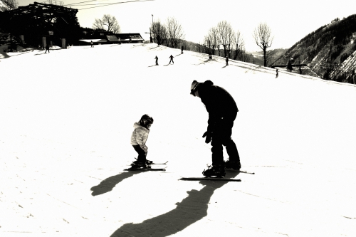 Cette année donc, c’était une découverte : les premiers essayages de chaussures de ski chez le loueur, les premières descentes en ski, le chasse-neige et les premières chutes.
