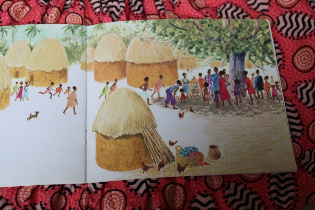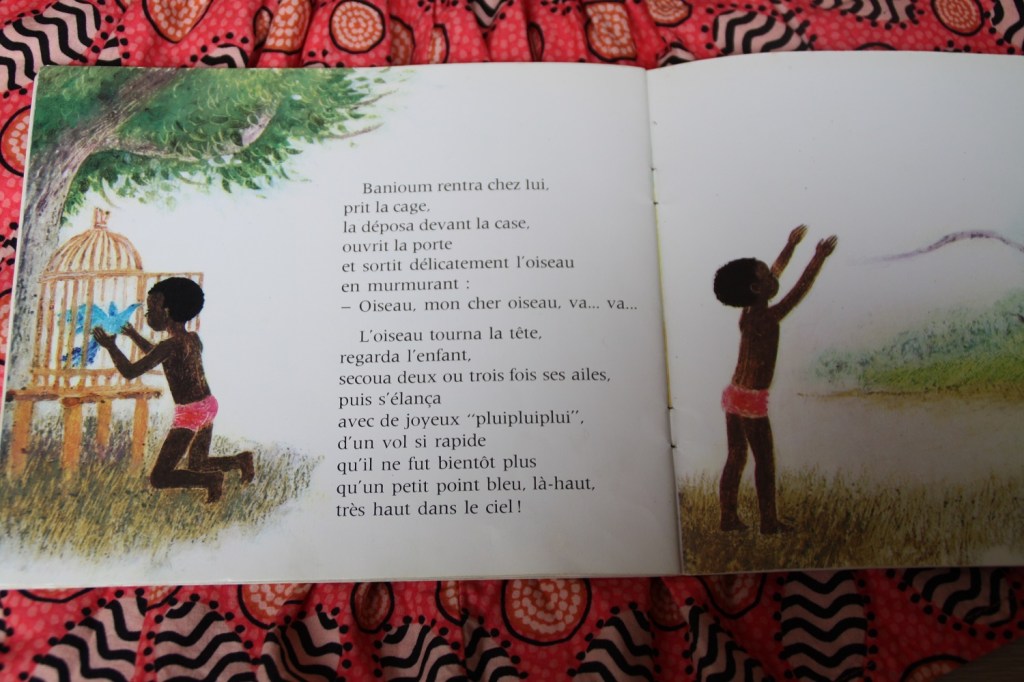 Banioum comprend mieux l’oiseau et décide de le libérer. Et les premières gouttes tombent. Une très belle morale avec de jolies illustrations. Forcément, un coup de coeur.