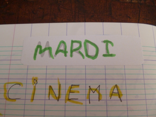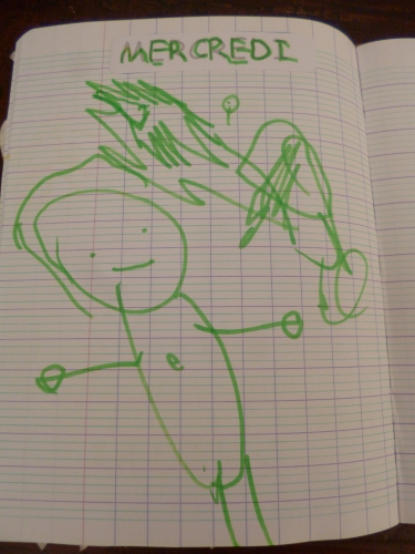 On a décoré ensemble la première page. Et j’avais noté les jours de la semaine sur chaque double page. Ce qui lui permettait aussi de compter le nombre de jours restants avant que je rentre.