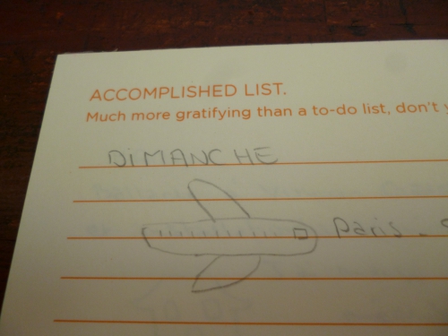 Et de mon côté, j’ai fait la même chose sur un bloc note de l’hôtel. Quelques anecdotes et quelques croquis pour lui parler de cette semaine et de ce pays très différent du nôtre.