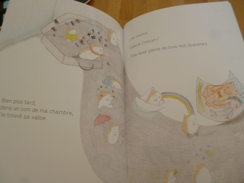 L’histoire me fait penser à un autre livre que j’aime beaucoup : Nos beaux doudous. D’ailleurs les illustrations crayonnées de Baptistine Mesange rappellent aussi celles d’Ilya Green (dont je vous parle souvent car je suis fan) qui a illustré le livre cité précédemment. Forcément, je ne pouvais qu’aimer les dessins de Chloum.