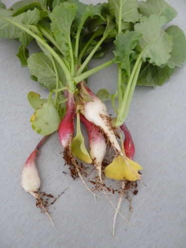 Et voici notre première récolte de radis.