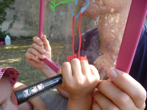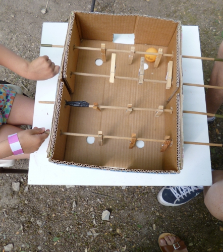 Mais aussi : se perdre dans le château labyrinthe en carton, faire un tour de manège à pédales, retrouver des légumes dans des boites mystères, faire de la balançoire, rechercher des bateaux dans la piscine à papier, souffler dans les tuyaux de l’arbre à sons…