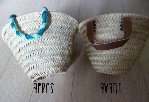 Il existe plein de façon de customiser ces paniers en paille : ruban, dentelle, tissu, peinture, pompon, tricotin, broderie…