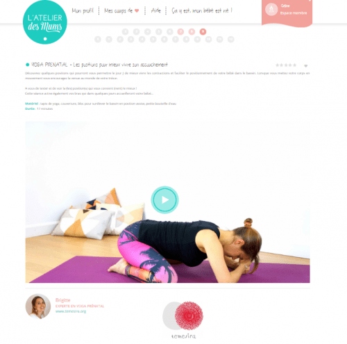 Alors, lorsqu’on m’a proposé de tester le site l’Atelier des Mums, qui propose notamment (mais pas que) des vidéos de yoga prénatal et de relaxation, je me suis dit que c’était la solution. Pouvoir faire des séances à domicile et lorsque j’avais du temps de libre. J’ai continué à suivre des cours de pilates jusqu’à 5 mois de grossesse, mais j’avais ensuite besoin d’exercices plus adaptés.