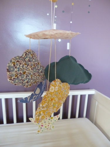 J’ai vraiment du mal à trouver des mobiles qui me plaisent dans les magasins bébés classiques. Pour l’ainée, j’avais contacté plusieurs créatrices pour leur demander de coudre des animaux de la forêt dans une couleur définie et à la taille de mon choix et j’avais ensuite assemblé le tout (c’est le mobile que vous pouvez voir dans la bannière du blog).