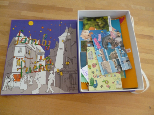 Ils ne savent pas encore lire et écrire, mais ils s’envoient déjà des courriers : les copains d’école, les cousins, les enfants des amis. Et pour garder ces jolies cartes, nous (ma fille ainée et moi) avons recyclé une box de thé.