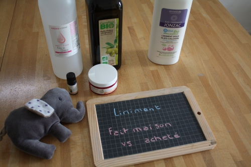 La mode étant au fait maison, naturel, zéro déchet… j’ai voulu suivre la tendance et faire moi-même le liniment pour bébé. Ce n’est pas compliqué et on trouve facilement les ingrédients et des recettes sur internet.