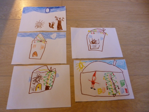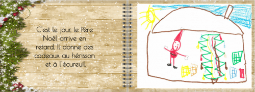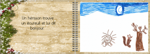 J’avais commencé à vous montrer, il y a quelques semaines, notre projet de création de livre (c’était là). Je vous présente donc aujourd’hui notre conte de Noël : Ecureuil et hérisson. Une histoire imaginée par ma fille de 5 ans, illustrée par celle-ci (avec mon aide pour dessiner l’écureuil) et avec ses mots pour la raconter.