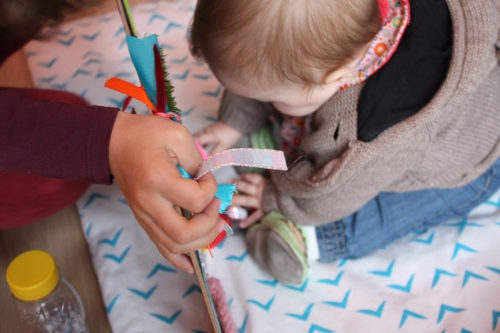 Au passage, vous pouvez apercevoir deux nouvelles bouteilles sensorielles : une avec des petits pompons et une autre avec des confettis du carnaval (celle avec les fleurs est à découvrir ici).
