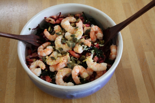Le goût naturellement terreux de la betterave tranche avec les ingrédients de la mer de cette salade. Bon appétit !