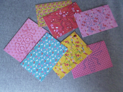 Qui dit jardin, dit fleurs et petites bêtes. Les cartes d’invitation ont donc été réalisées avec du papier fleuri et des pochoirs d’insectes. A l’intérieur de la carte, il y avait le message et un dessin de ma fille, toujours sur le thème du jardin avec des fleurs et des papillons.