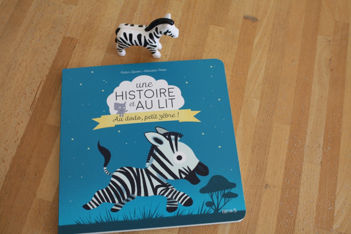 Voici un des six titres de cette collection de livres pour tout-petits : Au dodo, petit zèbre ! de Didier Zanon et Sébastien Pelon publié chez Fleurus.