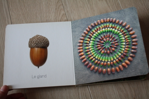 Je vous avais déjà présenté P’tit land art printemps ici, voici un autre livre de cette collection pour tout-petits, publié chez Petite Plume. Dix éléments naturels mis en scène par Marc Pouyet, spécialiste du land art.