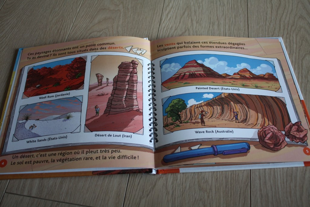 Bon, c’est sympa de découvrir le désert en livre mais voir en vrai le désert de sable, les dunes, les dromadaires et les palmeraies dans les wadis, c’est quand même mieux 😉 (d’ailleurs j’ai partagé lundi quelques photos de notre voyage).