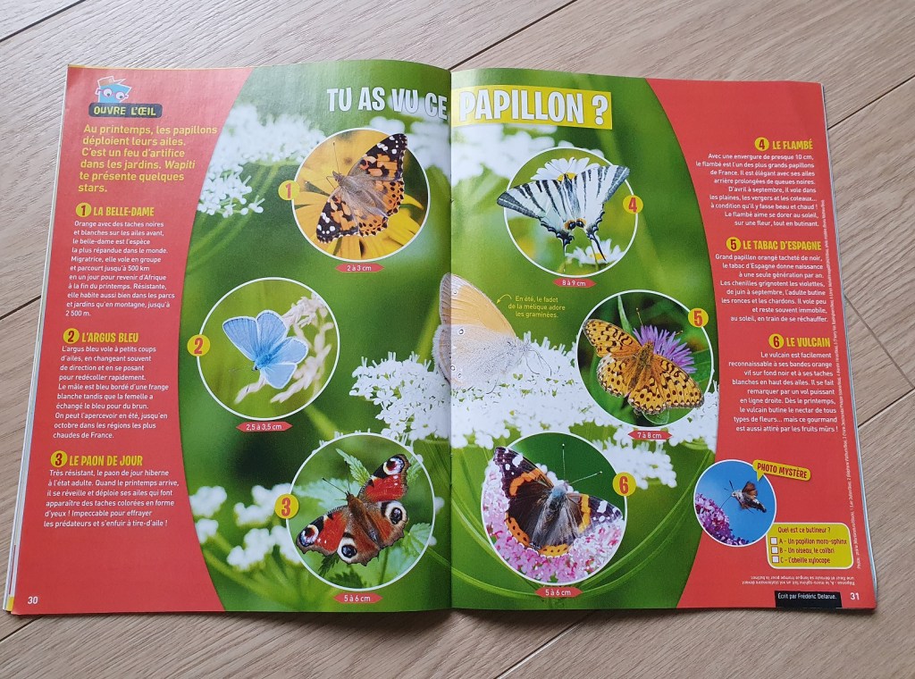 Pour continuer sur les papillons, nous avons observé différentes espèces de papillon dans le magazine Wapiti du mois de juin.