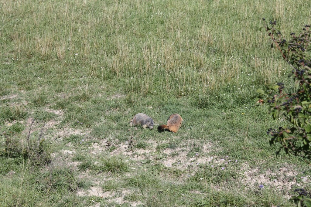 Les filles étaient ravies de voir les marmottes manger (de l’herbe et des fleurs), courir, rentrer et sortir de leur terrier ou juste prendre le soleil. Par contre, il est strictement interdit de les nourrir.