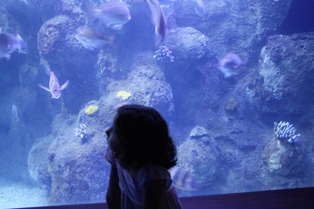 Et enfin, nous arrivons dans la partie aquarium, avec de nombreux poissons des mers locales, mais aussi des tropiques. Méduses, poissons, raies, nous en avons vu de toutes les couleurs, avons été immergés grâce à un tunnel vitré. Les filles ont adoré plonger leur main dans un bassin pour tenter de toucher des poissons.
