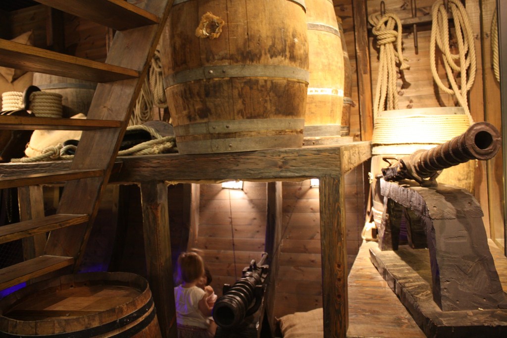 J’ai trouvé les vitrines au peu hautes pour les enfants (même pour la grande de 1m20), mais les filles ont adoré la reconstitution d’une cale de bateau. Pirates à bâbord !