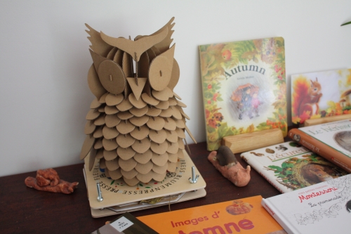 Hou hou, hulule le hibou ou la chouette (je ne fais pas trop la différence). Voici une activité manuelle que ma fille aînée a beaucoup aimé : assembler un hibou en carton. C’est vendu comme un kit avec de multiples pièces de carton prédécoupées et un mode d’emploi. Pas besoin de colle, les pièces se fixent entre elles grâce à des encoches.