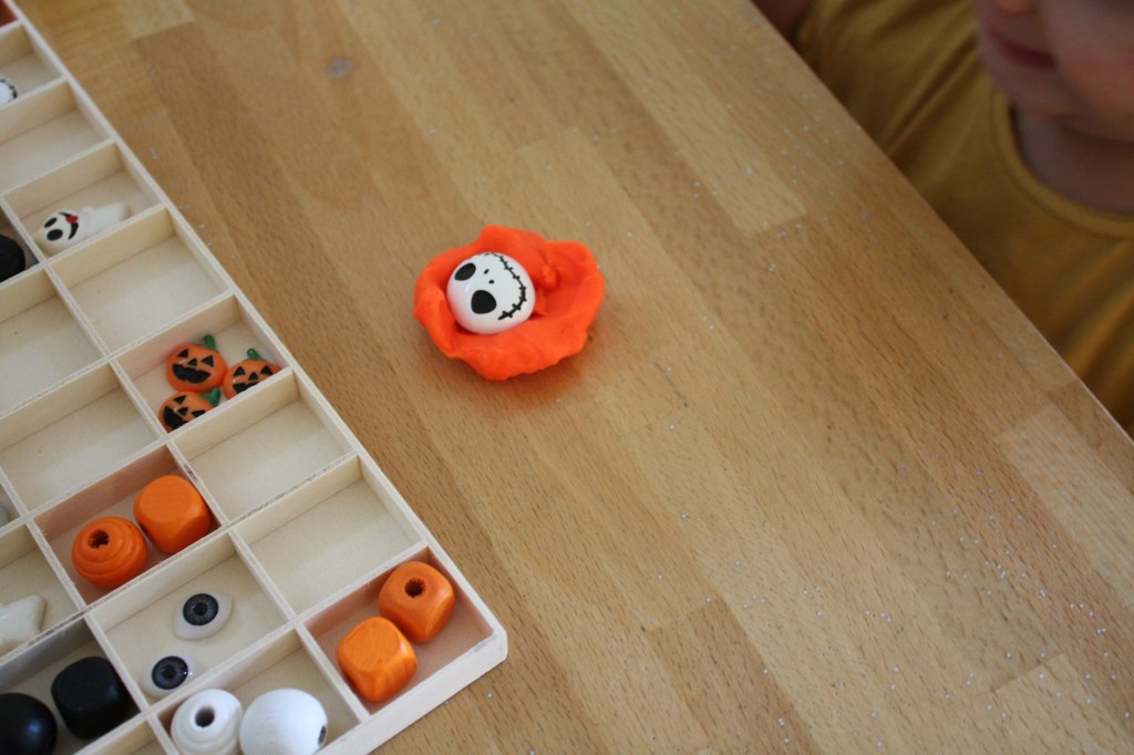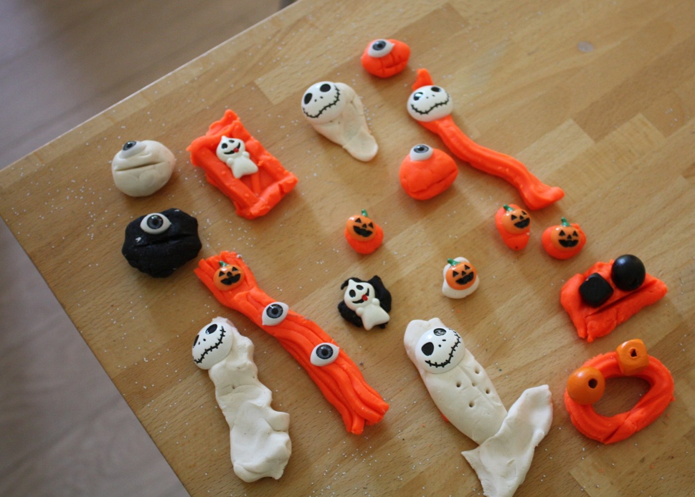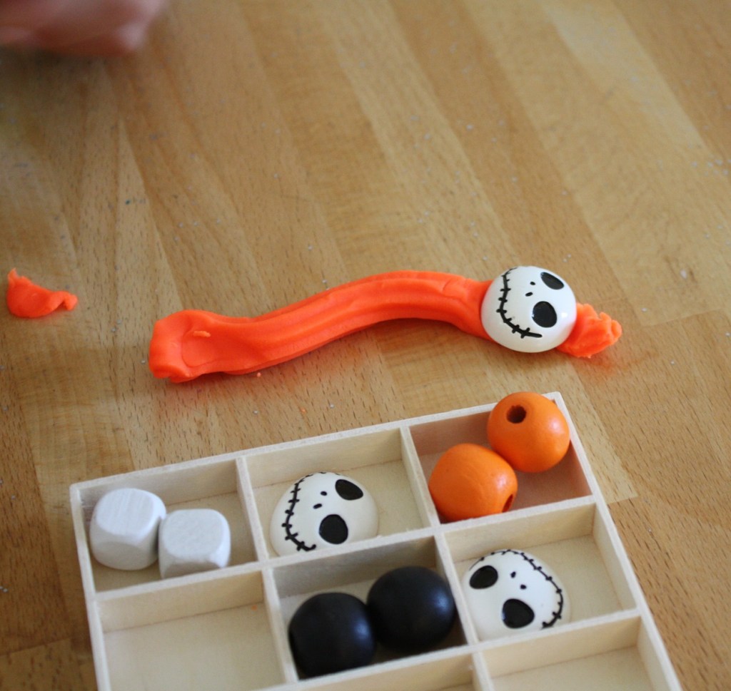 Halloween est dans deux jours à peine. Est-ce déguisements et stocks de bonbons sont prêts ? Si vous avez la chance d’être en vacances avec vos enfants, voici une idée d’activité pour les occuper avant la terrible fête. Mettez leur à disposition de la pâte à modeler (orange, noire et blanche), des perles de même couleur et des petites décorations d’Halloween type cabochon. Pourquoi pas aussi quelques ustensiles pour modeler, former et couper.