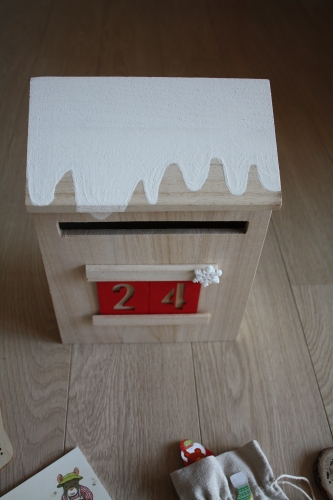 J’aurais volontiers refait un calendrier puzzle comme l’an dernier ou il y a trois ans. Une pièce par jour pour la petite, quatre ou 5 pour la grande, pour découvrir progressivement le dessin d’un joli puzzle. Mais, j’aime varier. Alors, cette année, il n’aura pas de petits sachets en tissu suspendus dans le salon, mais une boite aux lettres. Pour ce qui est des surprises à découvrir chaque jour, rien n’est encore figé (l’avantage de ne pas avoir à tout installer le 1er décembre). J’ai listé des idées, acheter deux ou trois trucs, mais je vais m’adapter en fonction du planning des journées (notamment les soirs d’école, après l’étude). Essentiellement, les surprises seront des activités à faire en famille, sur le thème de Noël.