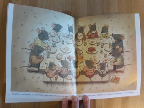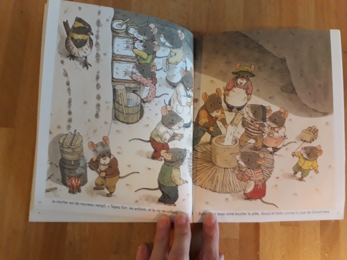 Je vous présente encore une fois une histoire de la famille Souris. Nous aimons beaucoup ces histoires, les jolies illustrations détaillées et les aventures de Benjamin, Petite Sœur et des 12 autres souris. Mais je dois avouer qu’à la première lecture, je n’ai moins accroché que pour les précédentes histoires et les filles ont moins réclamé cette lecture. Les autres histoires de cette famille étaient plus tournées vers la nature ou le quotidien de la famille. Cependant, après m’être un peu documentée, ce livre nous fait découvrir les traditions japonaises (l’auteur est japonais) et je pense que cela peut-être intéressant à lire couplé avec un documentaire (écrit ou filmé) sur le Japon.