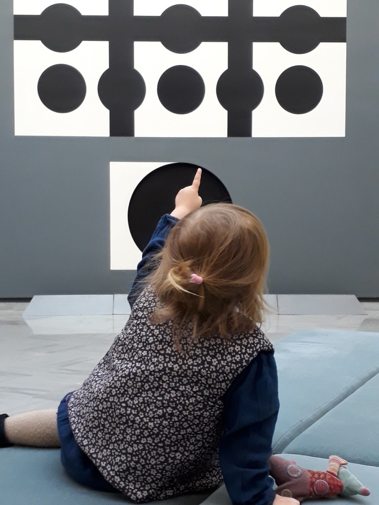 L’aînée était contente de ses deux heures de visite guidée, jeu de piste et atelier. C’était pour les enfants de 6 à 12 ans, mais les parents, frères et sœurs pouvaient profiter aussi de la visite. La cadette a préféré déambuler librement au milieu des grandes œuvres.