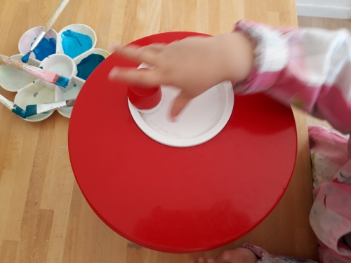 Peindre avec des pinceaux, des rouleaux ou les doigts, c’est sympa, mais si on essayait autre chose ! C’est la peinture à l’essoreuse à salade et à la brosse à dent que petite sœur a testé.