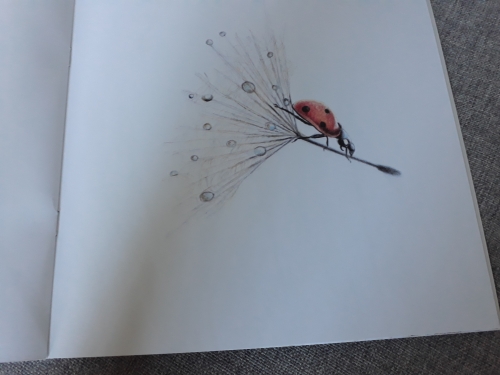 C’est une histoire sur la nature, avec peu de texte pour les plus petits et surtout de superbes illustrations. Les dessins sont très réalistes et détaillées, mais avec une douceur aussi grâce au travail au crayon de l’auteur et illustratrice. Une coccinelle sur un brin d’herbe est un livre d’Ethel Ravidat auto-édité par Lilavril.