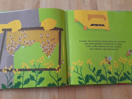 Une large place est faite aux illustrations. La vie, les différentes fonctions des abeilles, l’organisation de la ruche et la fabrication du miel sont expliqués avec des mots simples. C’est donc un documentaire plutôt destiné aux enfants de maternelle.